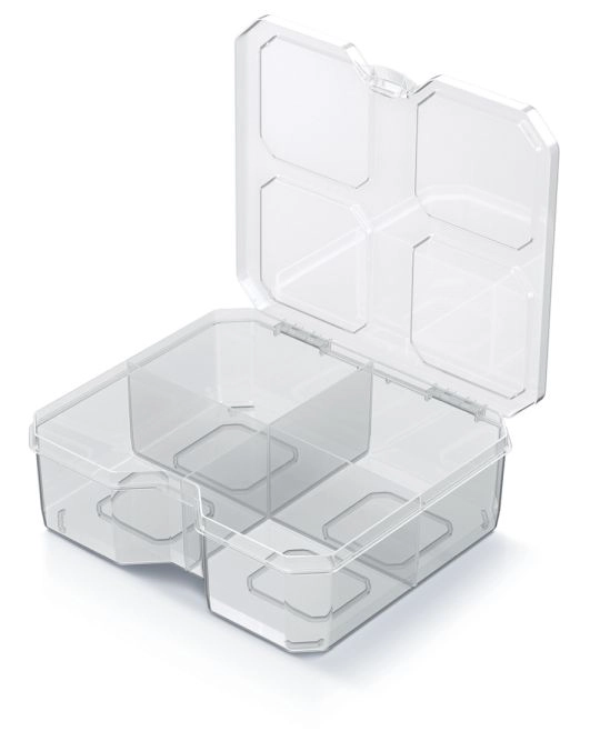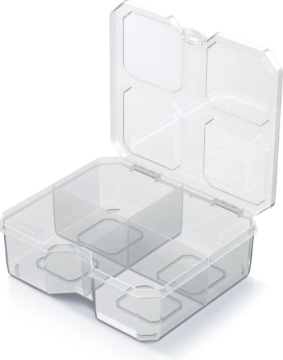 Udržte si pořádek s kompaktním organizérem SQR box, který je ideální pro třídění šroubků, hřebíků, kancelářských sponek a dalších drobností. Průhledné víko chrání obsah před prachem a nečistotami a zároveň umožňuje okamžitou kontrolu obsahu.