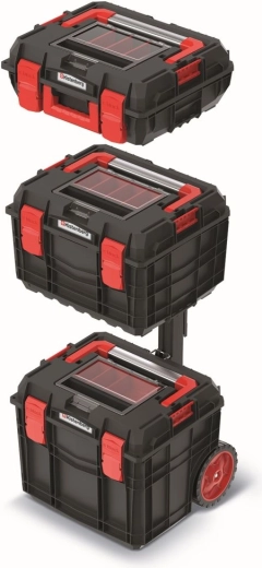 Užijte si dokonalý přehled nad nářadím s modulárním setem kufrů, který kombinuje odolnost, praktičnost a chytré uspořádání. Polykarbonátové víko s průhledným organizérem umožňuje okamžitou orientaci v obsahu, zatímco tři vyjímatelné přepážky a čtyři nádobky pomohou roztřídit šroubky, bity i další drobnosti.