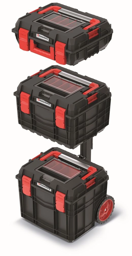 Kufry jsou vyrobeny ze směsi polymerů se zvýšenou pevností, doplněné o prvky z ABS a kovové panty pro dlouhou životnost. Těsnění proti prachu a vodě chrání obsah i v náročných podmínkách. Modulární konstrukce dovoluje převážet celý set jako jeden celek nebo použít jen vybraný kufr podle aktuální potřeby.
