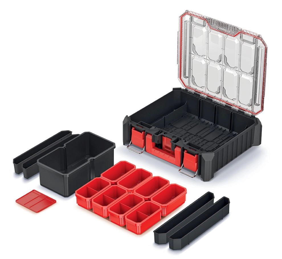 Organizér CMX je navržen pro profesionály i domácí kutily, kteří požadují maximální pořádek a odolnost. Tělo ze směsi vysoce pevných polymerů, doplněné o ABS prvky a kovové panty, zaručuje dlouhou životnost i při každodenním používání. Díky průhlednému polykarbonátovému víku okamžitě vidíte obsah bez nutnosti otevírání.