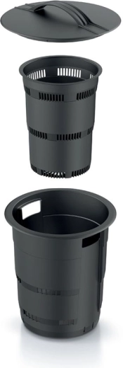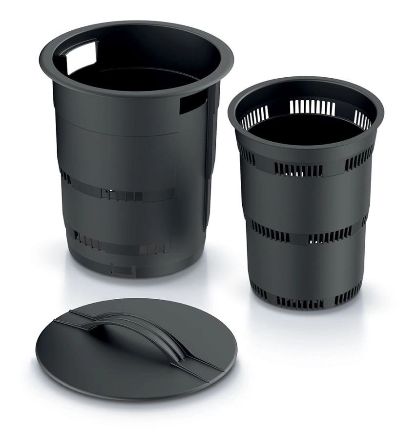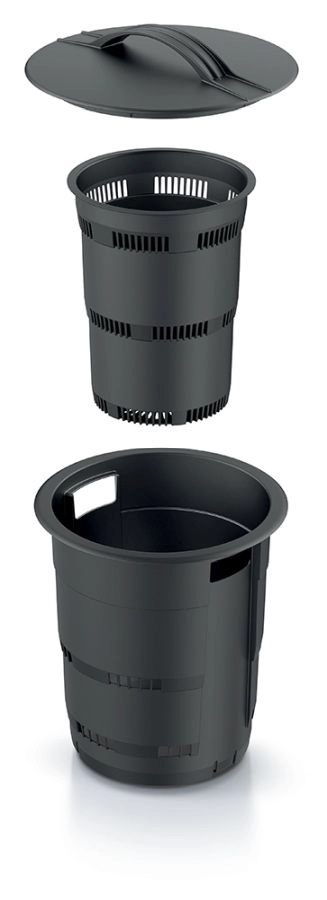 Díky kompaktní výšce 25 cm a odnímatelnému víku je manipulace i doplňování snadné. Robustní plast odolává vlhkosti a povětrnosti, takže kompostér bez potíží zvládne celoroční provoz. Vhodný pro slupky zeleniny a ovoce, kávovou sedlinu, drobný rostlinný odpad či drcené skořápky vajec.