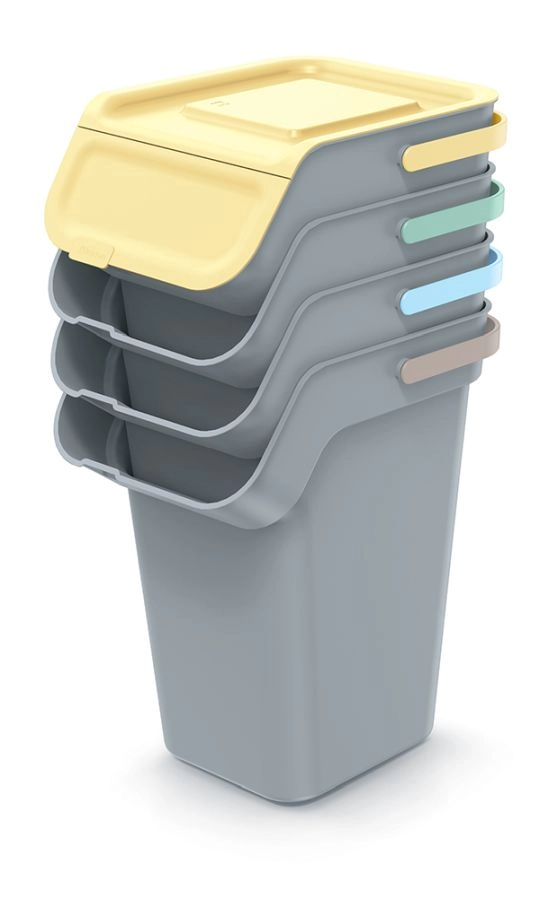 Praktická sada čtyř košů o objemu 4×25 l pro efektivní třídění odpadu v domácnosti i kanceláři. Díky modulárnímu, stohovatelnému designu šetří místo, světle šedé provedení ladí s interiérem a vyměnitelný filtr s aktivním uhlím účinně potlačuje pachy. Odolný plast zajistí dlouhou životnost a snadnou údržbu.