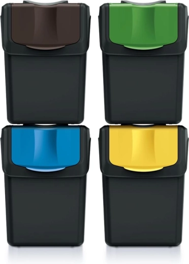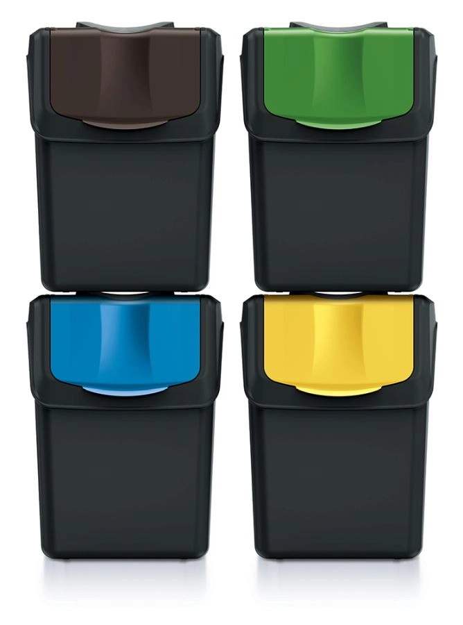 Sada košů na tříděný odpad Sortibox přináší promyšlené řešení pro pořádek a udržitelný životní styl. Díky kompaktním rozměrům a možnosti bezpečného stohování nad sebe efektivně využijete každý centimetr prostoru. Barevně odlišená víka a přiložené samolepky se symboly zajistí rychlou orientaci celé rodiny.