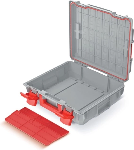 Vnitřní prostor je navržen pro efektivní organizaci, takže máte vše rychle po ruce. Moderní šedá barva dodává kufru čistý, profesionální vzhled a skvěle zapadne do každého pracovního prostředí.