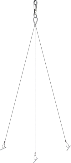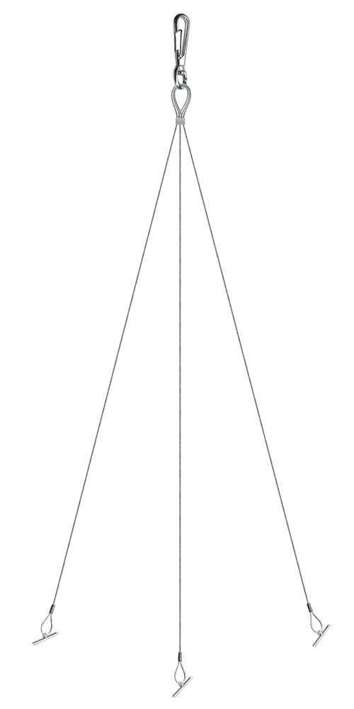 - Bezpečné zavěšení – tři ocelová lanka rozkládají hmotnost rovnoměrně.