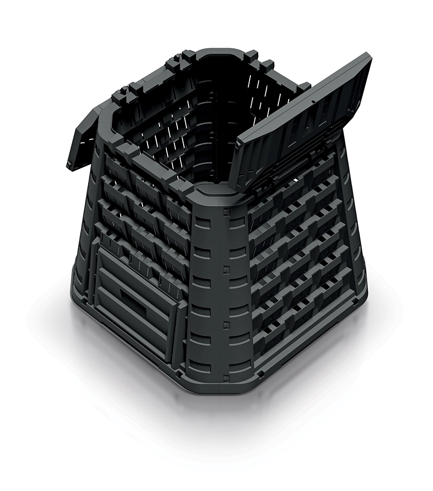 EVOGREEN VARIO je spolehlivý kompostér pro každou zahradu. Robustní, povětrnosti odolný plast s UV stabilizací zvládá celoroční provoz, zatímco promyšlené větrací otvory podporují optimální cirkulaci vzduchu pro rychlejší kompostování. Horní víko se zámkem chrání obsah před zvířaty a povětrností a spodní výsuvná dvířka umožní snadný odběr zralého kompostu.