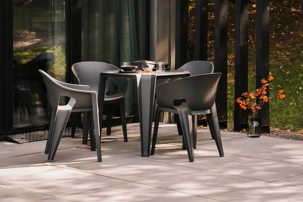 Kvalitní plast odolává dešti, slunci i vlhkosti, takže se skvěle hodí na terasy a balkony po celý rok.