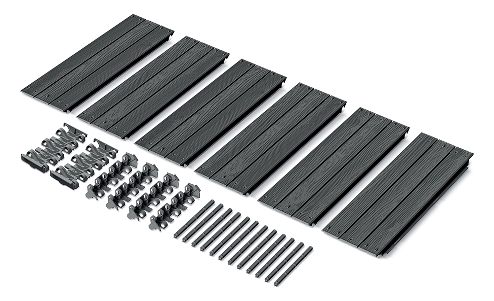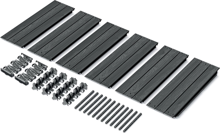 Povrch s dekorem dřeva z kvalitního plastu odolá dešti, UV záření i mrazu a udrží si tvar i barvu po dlouhá léta.