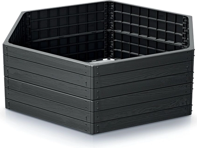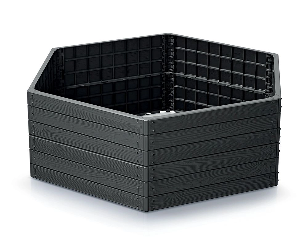 Absence dna podporuje zdravý růst kořenů, zlepšuje odvodnění a omezuje zaplevelení. Konstrukce z vysoce kvalitního plastu je pevná, UV stabilní a odolná proti povětrnosti. Díly lze snadno skládat a stohovat, takže si výšku přizpůsobíte přesně svým potřebám a ergonomii práce.