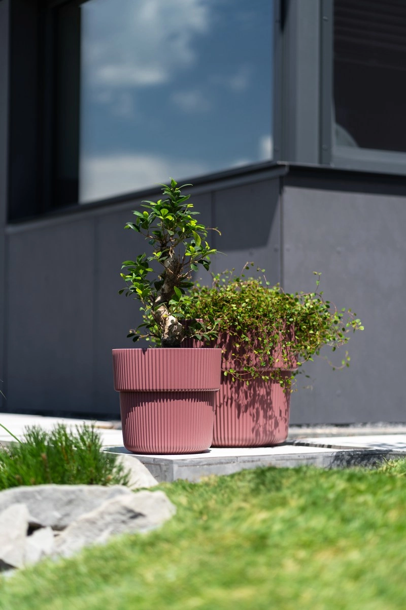 Vertikální drážky dodávají květináči styl a stabilitu. Snadno zapadne do současných interiérů, na balkon i k vstupu domu.