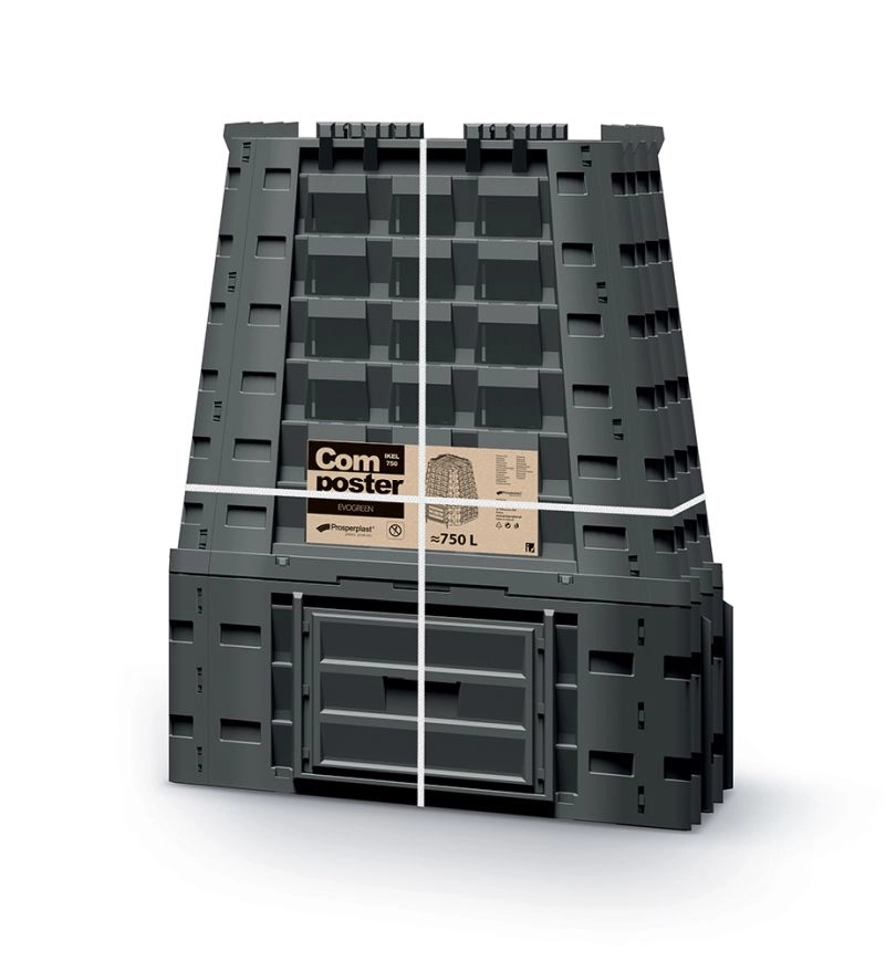 Kompostér Evogreen Vario 750 l je praktické řešení pro majitele zahrad, kteří hledají velký a zároveň snadno ovladatelný kompostér. Díky promyšlenému systému větrání podporuje optimální rozklad organického materiálu a zajišťuje rychlou přeměnu bioodpadu na kompost. Černá barva napomáhá lepšímu prohřívání obsahu.