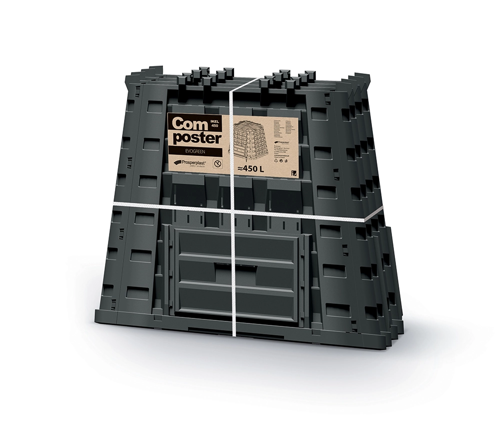 EVOGREEN VARIO 450 l je spolehlivý a objemný kompostér pro střední i větší zahrady. Díky promyšlené ventilaci podporuje rychlé a efektivní zrání kompostu, zatímco robustní žebrovaná konstrukce zajišťuje stabilitu v exteriéru po celý rok. Černá barva napomáhá zahřívání obsahu a urychluje rozklad.