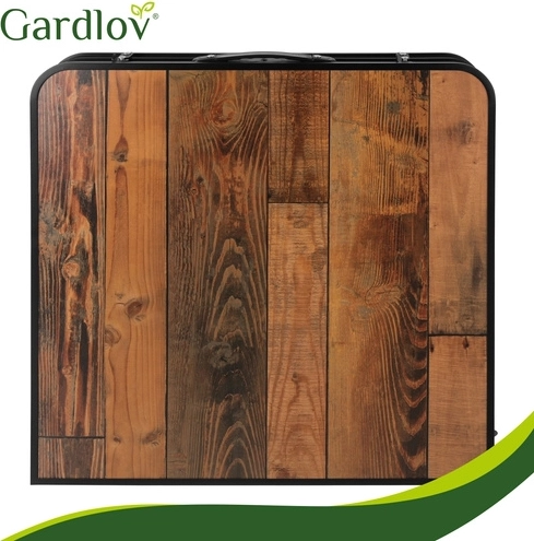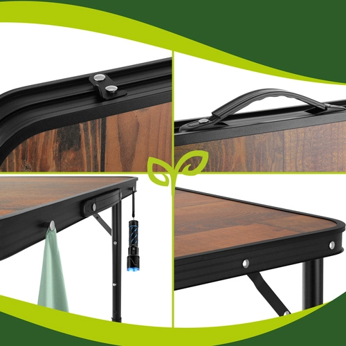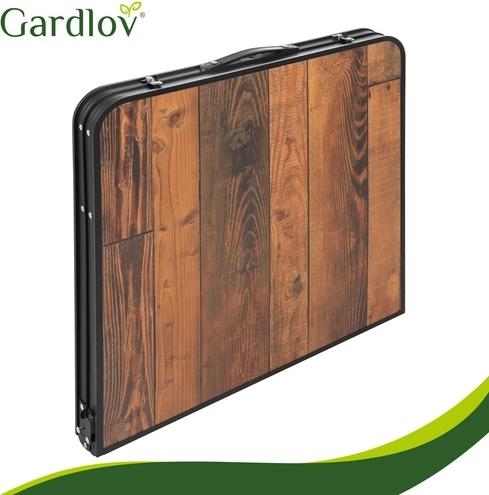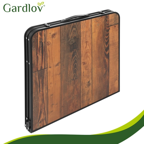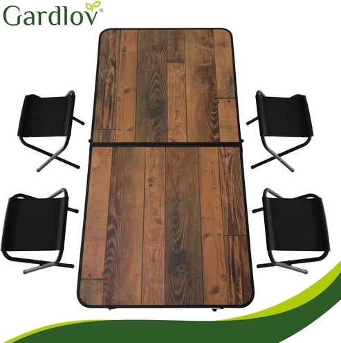 Užijte si piknik, kempování i posezení na terase bez složité přípravy. Tento skládací stůl GARDLOV se čtyřmi stoličkami se během chvilky rozloží a stejně rychle zase složí do přenosného kufříku. Dekor dřeva na desce působí elegantně, zatímco odolná kovová konstrukce a zajišťovací zámky proti samovolnému složení drží vše pevně na místě.