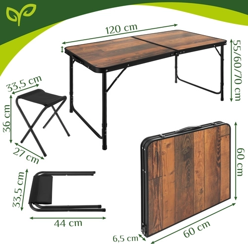 Turistický/kempingový set – skládací stůl + 4 skládací stoličky