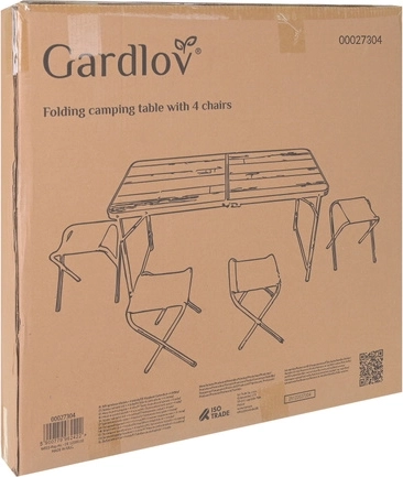 1× skládací stůl (kufřík), 4× skládací stolička, vícejazyčný návod, přepravní karton