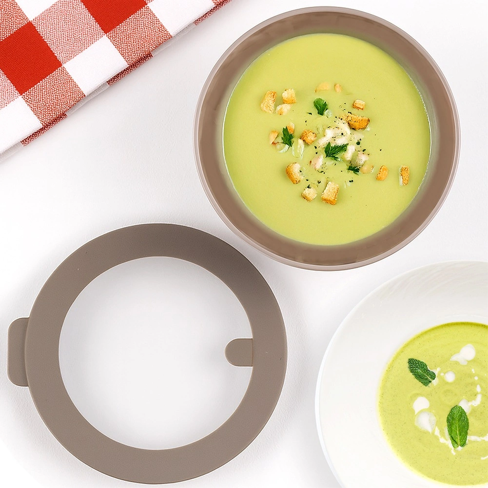 Gumový kroužek po obvodu víka pomáhá lépe utěsnit mísu, omezit únik vůní a udržet potraviny déle čerstvé při skladování i přenášení.