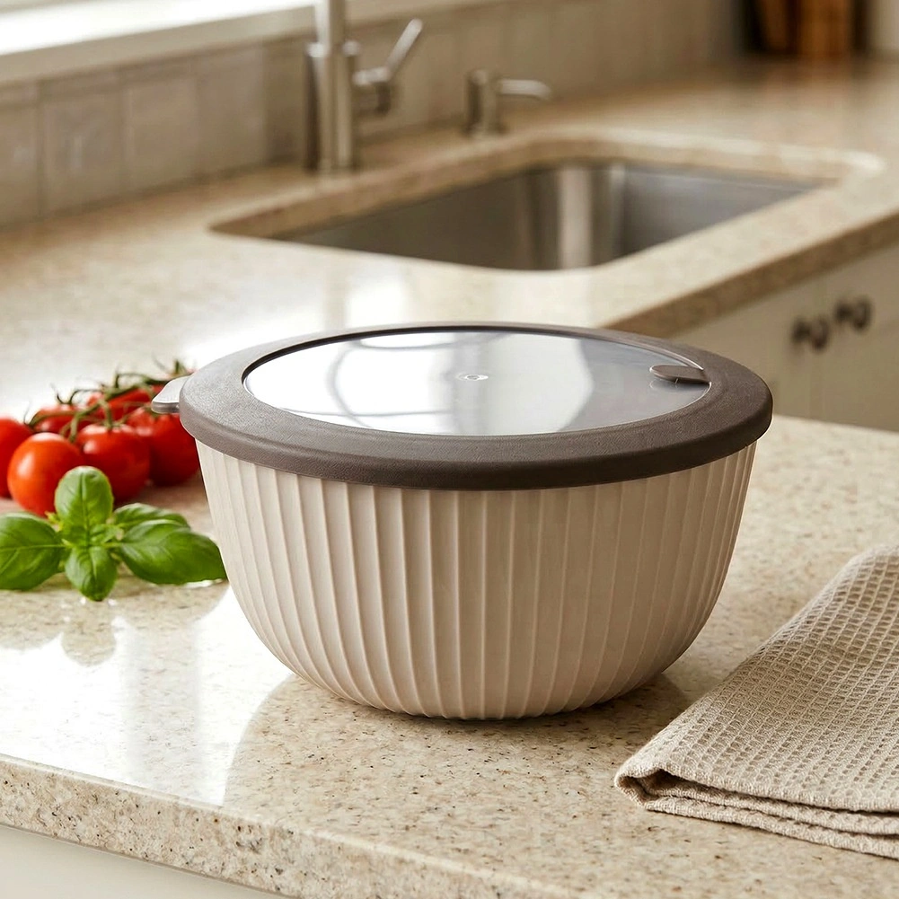 - Objem 2,5 l – na těsta, saláty, marinády i servírování.