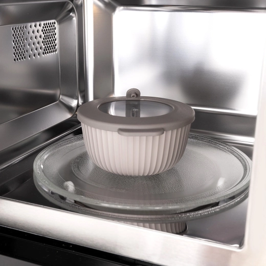 Víko s integrovaným ventilem umožní bezpečný ohřev v mikrovlnné troubě bez prskání. Silikonové těsnění pomáhá udržet čerstvost a brání únikům tekutin.