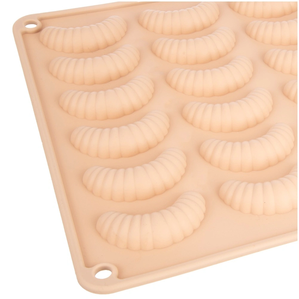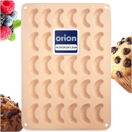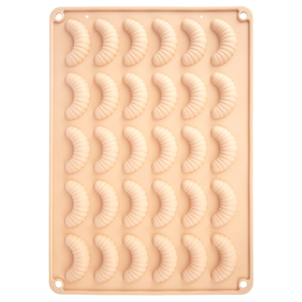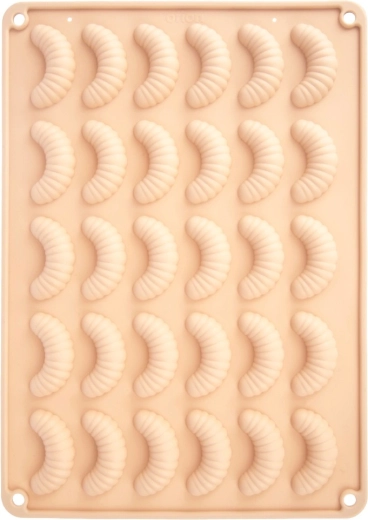 Tato béžová silikonová forma vám umožní jednoduše připravit dokonale tvarované rohlíčky o délce cca 5,5 cm. Díky pružnému a nepřilnavému materiálu se těsto nelepí a hotové kousky snadno vyjmete bez nutnosti vymazávání či vysypávání. Forma nepřebírá pachy ani chutě a výborně rozvádí teplo pro rovnoměrné propečení.
