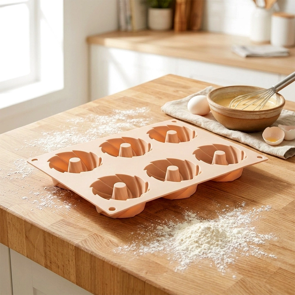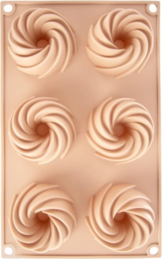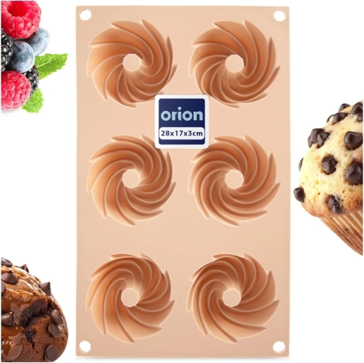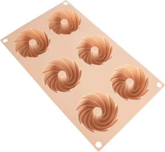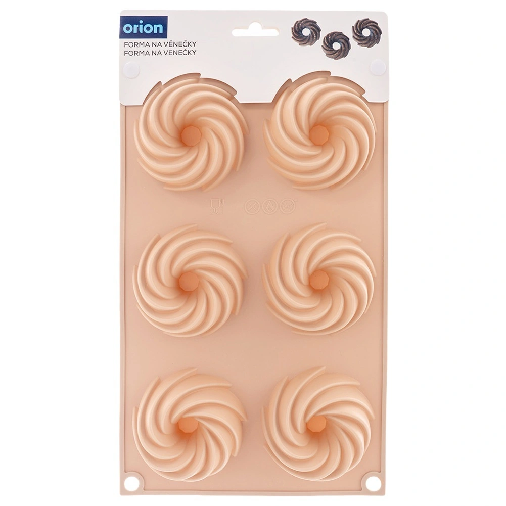 Objevte pohodlné pečení s flexibilní silikonovou formou v elegantní béžové barvě. Šest důlků se středovým komínkem vytváří dekorativní tvar věnce, který vypadá skvěle na každém stole. Materiál je nepřilnavý, odolný proti deformaci a nepohlcuje pachy, takže těsto snadno vyjmete bez přidání přebytečného tuku.
