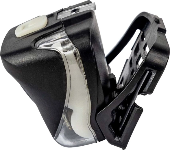 Tělo z polykarbonátu s pogumovaným povrchem je odolné a bezpečné při pádu z výšky do 80 cm. Ovládání zajišťuje jediné horní tlačítko: rychlé přepínání bílých režimů a podržením aktivace červeného světla. Napájení zajišťují 3× AAA (alkalické či NiMH), hlavový pásek je nastavitelný a díky krytí IP44 zvládne i déšť.