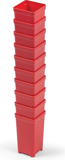 Praktická sada 10 plastových boxů na nářadí TAGER BOX v červené barvě je ideální pro přehledné uložení drobných součástek, šroubků a hřebíků. Kompaktní rozměry 5 × 5 × 9,7 cm a odolný plast zaručují dlouhou životnost, zatímco stohovatelný design šetří místo a udržuje pořádek ve vaší dílně, garáži i pracovně.