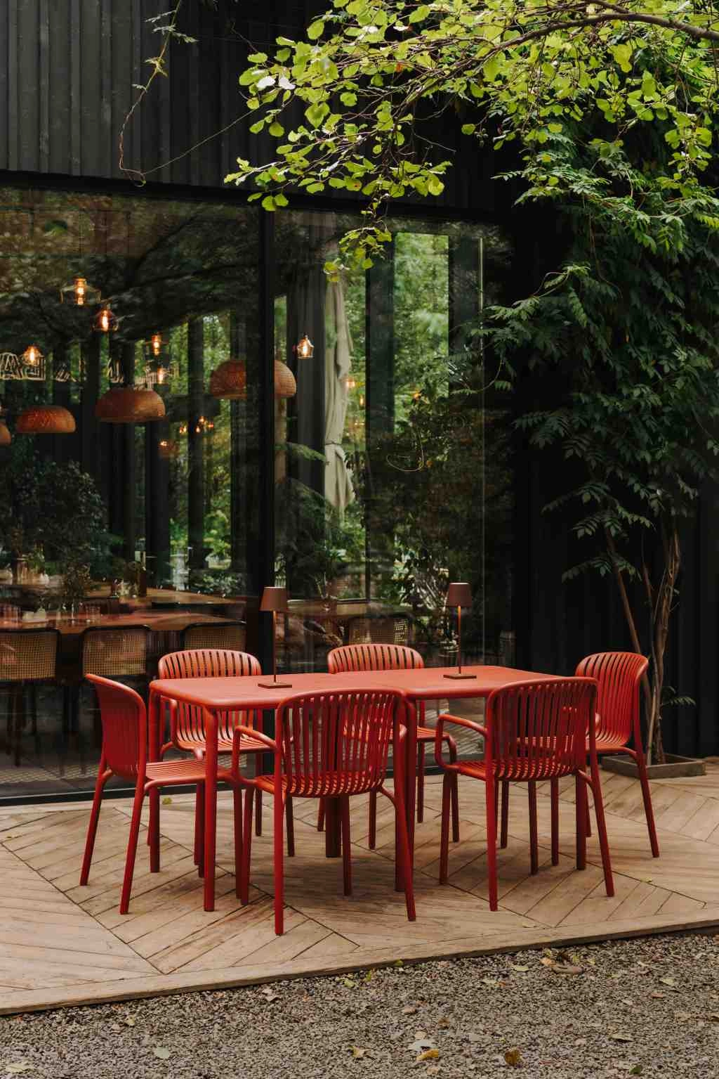 Odolný plastový materiál je nenáročný na údržbu a skvěle snáší venkovní podmínky. Díky nízké hmotnosti a možnosti stohování je manipulace i skladování velmi jednoduché, což ocení domácnosti i provozovny s větším množstvím kusů.
