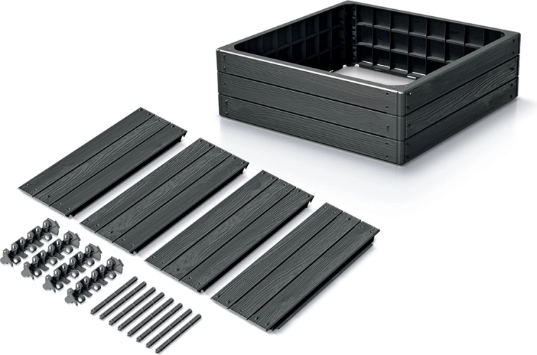Díky lehké konstrukci záhon snadno přenesete a přeuspořádáte podle potřeby. Modulární provedení s bočnicemi na zámky umožňuje rychlou, stabilní a čistou instalaci bez použití nářadí. Ideální pro pěstování zeleniny, bylinek i květin v moderním i přírodním prostředí.