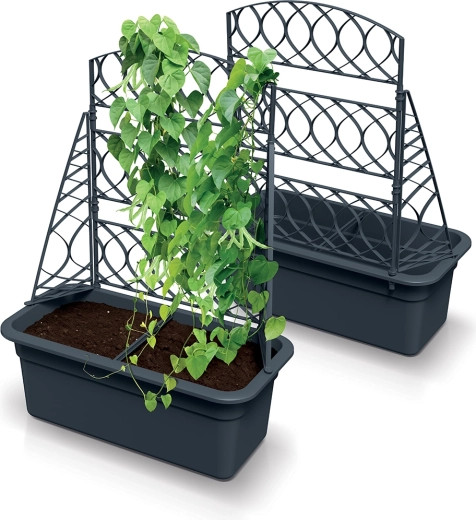 Obdélníkový truhlík s mříží šetří místo a elegantně doplní moderní exteriéry. Ideální pro vertikální pěstování.