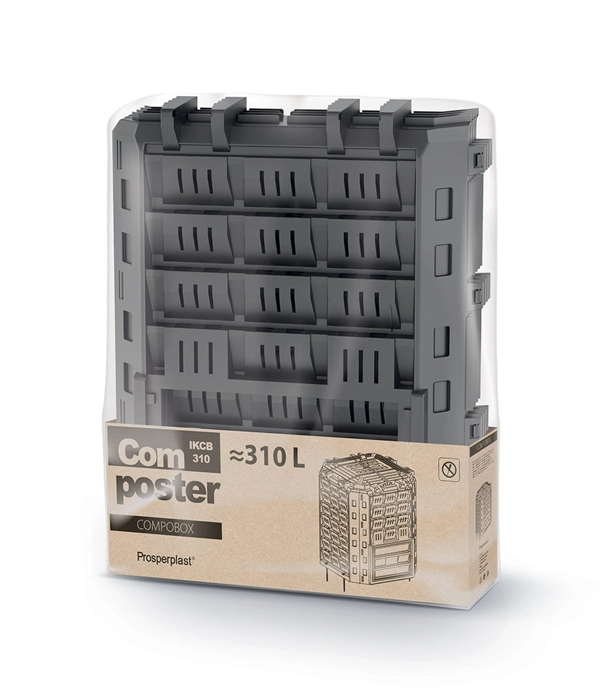Kompostér Prosperplast COMPOBOX 310 l je spolehlivým řešením pro domácí zahrady, kde pomáhá přeměnit kuchyňské a zahradní zbytky na kvalitní kompost. Modulární konstrukce umožňuje rychlou a intuitivní montáž bez nářadí, zatímco odolný plast zaručuje dlouhou životnost i při venkovním použití.
