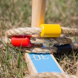Dřevěná konstrukce a silné provazové kroužky vydrží nadšení hráčů i pobyt na zahradě. Přírodní materiály jsou příjemné na dotek a šetrné k okolí.