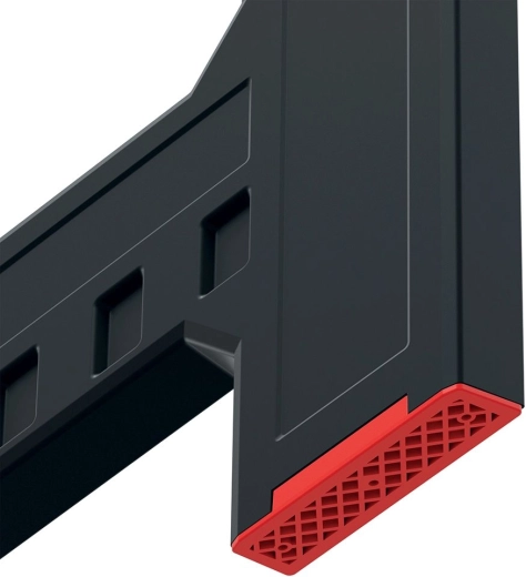 Červené koncovky zvyšují přilnavost, chrání podlahu a zlepšují viditelnost hran stojanu pro bezpečnější práci.