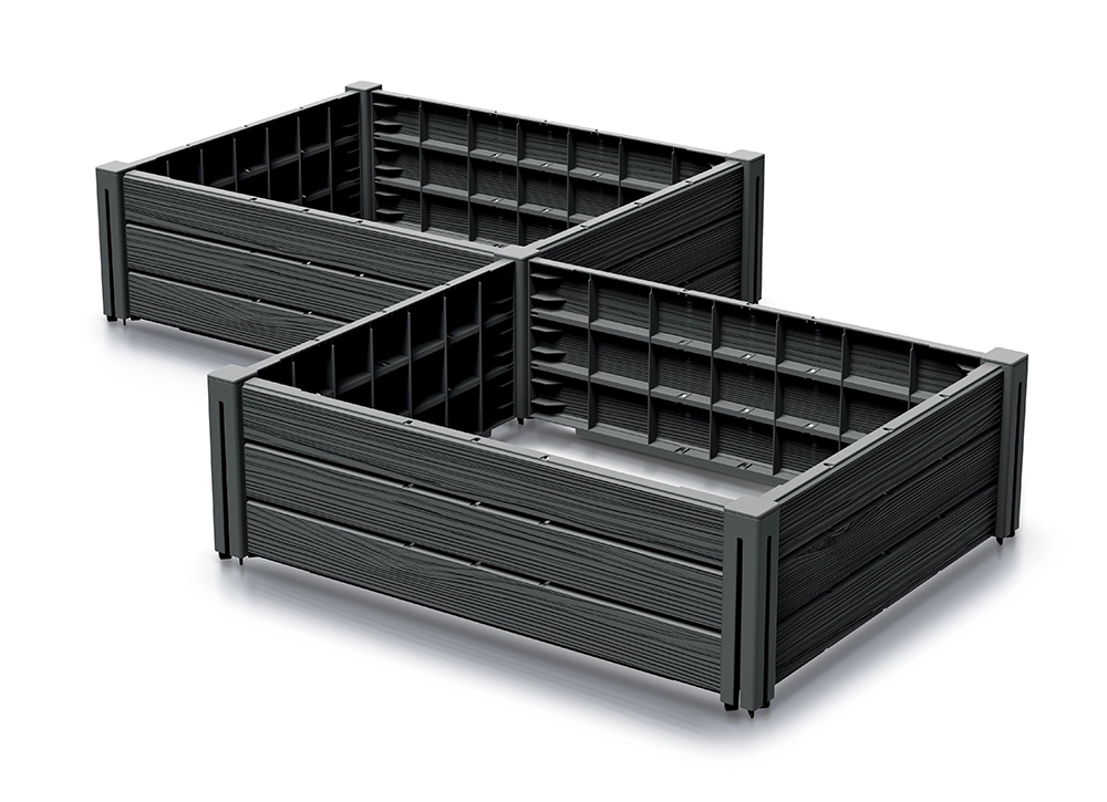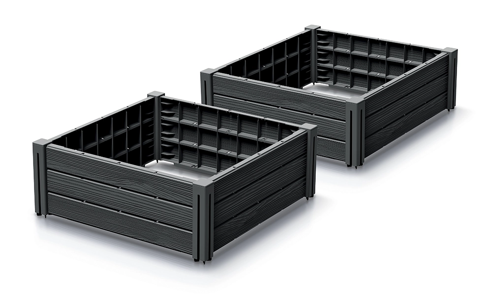 Přizpůsobte výšku a uspořádání přesně vašemu prostoru. Záhony lze stohovat a rozšiřovat pro různé konfigurace na zahradě, terase i balkónu.