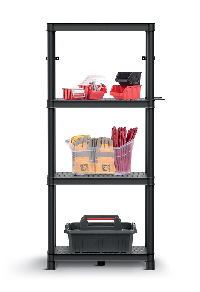 Spodní police unese až 80 kg a každá horní 35 kg. Odolný plast je lehký, pevný a odolává vlhkosti i korozi pro dlouhou životnost.