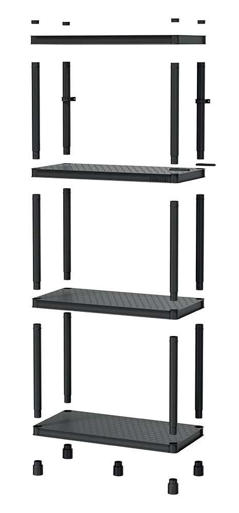 Díky zacvakávacím spojům regál složíte během pár minut, bez šroubů a speciálního nářadí. Ideální pro okamžité použití v garáži nebo dílně.