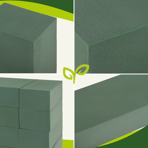 Profesionální zelená gąbka floristiky pro živé květiny udrží aranže déle svěží. Po namočení výborně saje vodu, poskytuje pevnou oporu stonkám a díky tvaru kvádru se snadno řeže a tvaruje do mís, košů i dekorací. Praktické balení 20 ks pro floristické dílny i domácí tvoření.