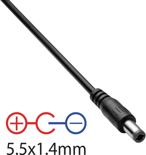 - Snadná kompatibilita – standardní koaxiální DC konektor 5,5 × 1,4 mm.