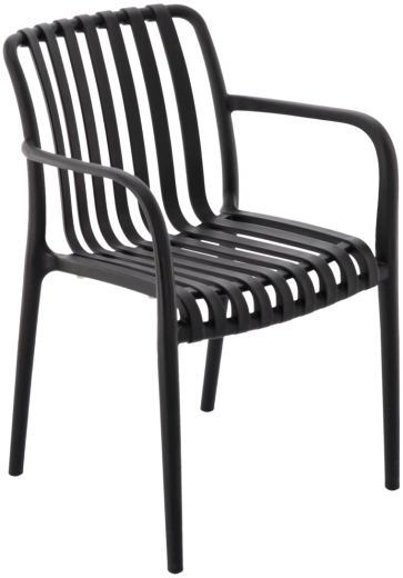 Stylová a odolná zahradní židle v elegantní černé barvě z kvalitního plastu s UV filtrem. Skvěle se hodí na zahradu, terasu i balkon, nabízí ergonomický tvar pro pohodlné sezení, je odolná vůči povětrnostním vlivům a snadno se čistí. Maximální nosnost 110 kg.