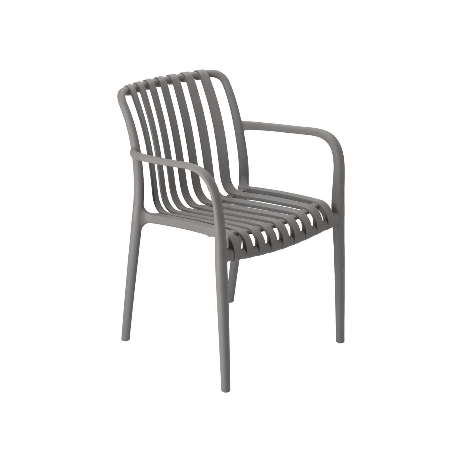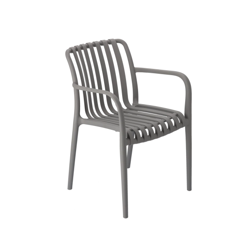 Tato šedá zahradní židle kombinuje moderní design a praktičnost. Díky materiálu s UV filtrem si dlouhodobě zachovává barvu a vzhled i při vystavení slunci. Je lehká, stabilní a díky ergonomickému tvaru poskytuje komfortní oporu zad pro každodenní posezení na zahradě, terase či balkonu.