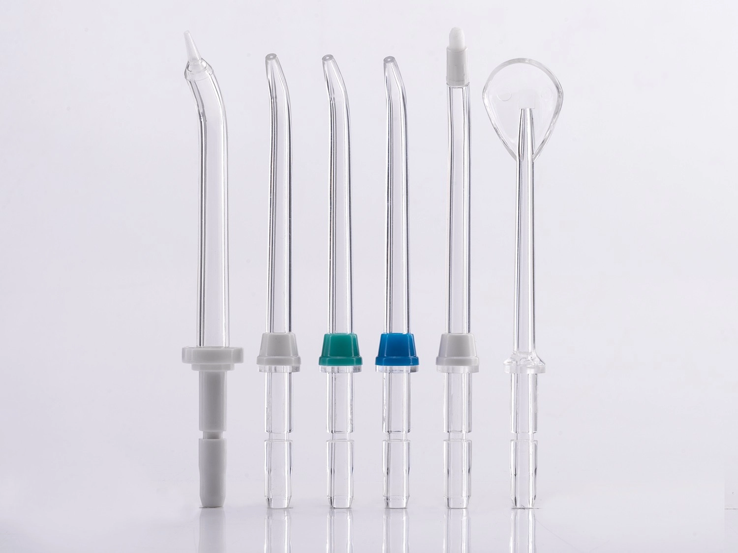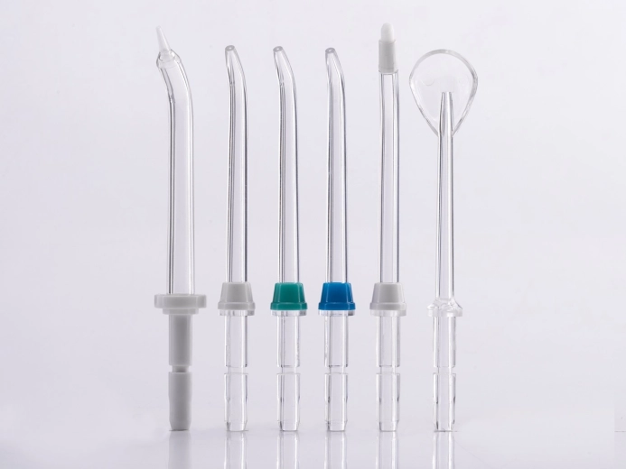 - 6 (3× standardní tryska, škrabka na jazyk, parodontální nástavec, ortodontický nástavec)