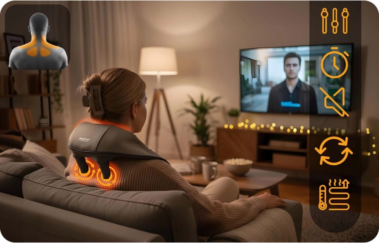 Jemné teplo podporuje prokrvení a zvyšuje efekt masáže. Ideální při dlouhém sezení, po sportu i v chladných dnech.