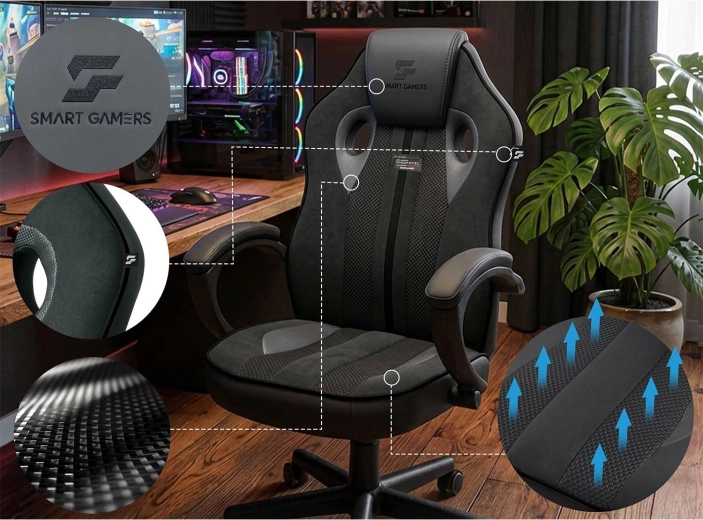 Herní židle Master Sofotel je navržena pro dlouhé hodiny hraní, práce i relaxu. Ergonomicky tvarované opěradlo ulevuje bederní části a pomáhá udržet správné držení těla. Prodyšné čalounění EmbrONE™ zajišťuje komfort i během náročných seancí, zatímco profilovaná opěrka hlavy stabilizuje krk a šíji.