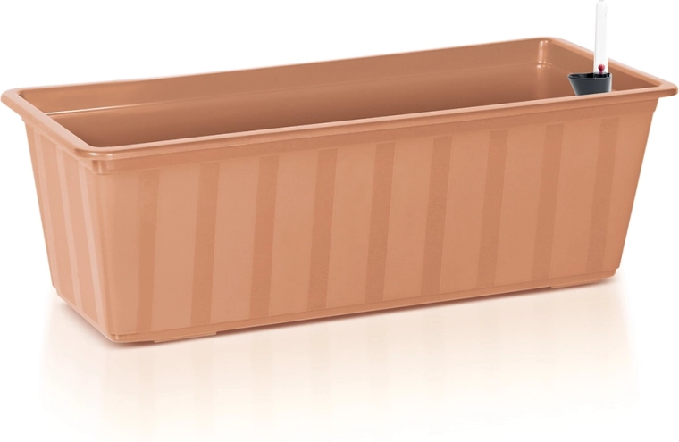 Užijte si svěží zeleň bez starostí. Samozavlažovací truhlík BALCONY CAN (60 × 18 × 14 cm) s objemem 11 l poskytuje dostatek prostoru pro kořeny a stabilní přísun vláhy. Lehká konstrukce z odolného plastu v přírodní terakotové barvě se hodí na každý balkon i terasu.
