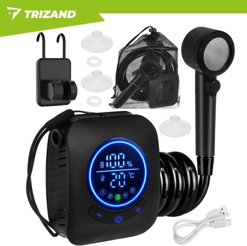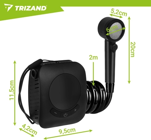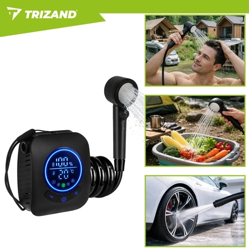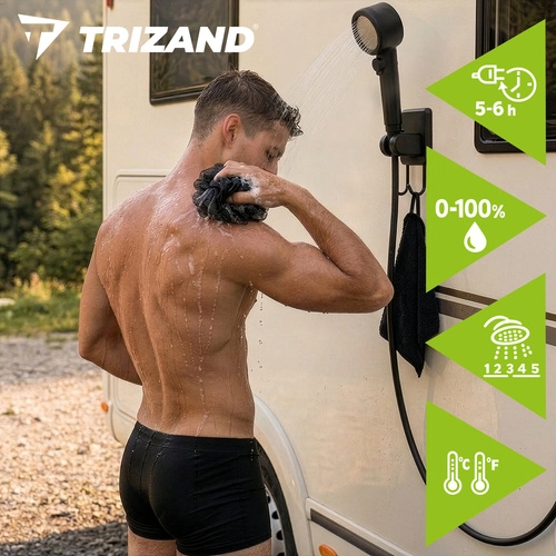 Užijte si teplou a osvěžující sprchu kdekoli. Tato cestovní sprcha TRIZAND kombinuje mobilitu, výkon a jednoduché ovládání. Díky silné baterii až na 180 minut provozu a plynulé regulaci tlaku máte jistotu komfortního mytí bez přístupu k pevnému vodovodu.