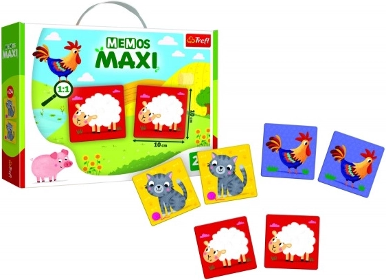 Maxi pexeso farma TREFL přináší dětem snadný a radostný začátek s paměťovými hrami. Velké a pevné kartičky s krásnými ilustracemi zvířátek jsou perfektní pro malé ručičky a podporují rozvoj pozornosti, paměti i jemné motoriky.