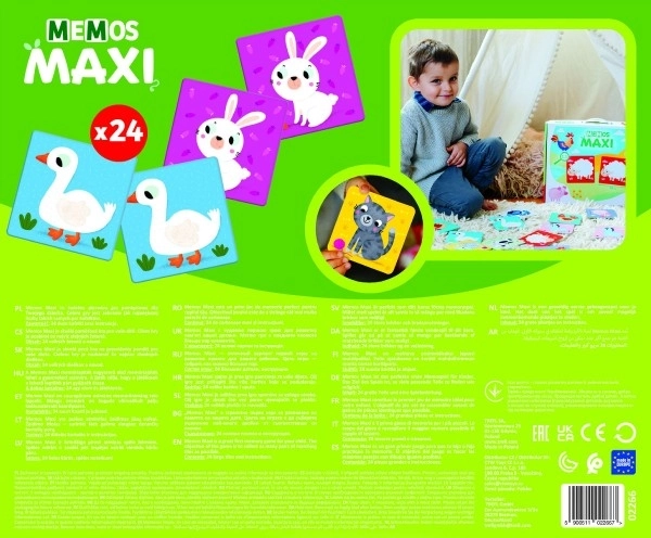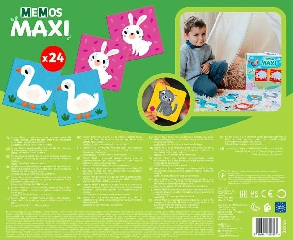 Oblíbená paměťová hra pro nejmenší děti s extra velkými kartičkami. Pestrobarevné ilustrace zvířátek ze statku, kartičky 10 cm a 12 párů pro zábavné procvičení paměti a koncentrace. Ideální první pexeso pro děti od 2 let, balené v krabičce s uchem pro snadné přenášení.