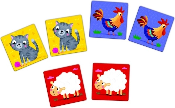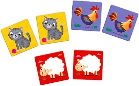 Veselé kočky, kohouti, ovečky a další zvířátka pomáhají udržet pozornost a usnadňují dětem hledání správných dvojic.