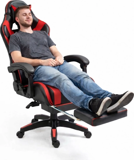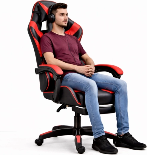 Prémiová ekokůže odolá každodennímu používání a zároveň se jednoduše udržuje. Sportovní černo‑červený design skvěle zapadne do hráčského pokoje, kanceláře i studentského koutku.