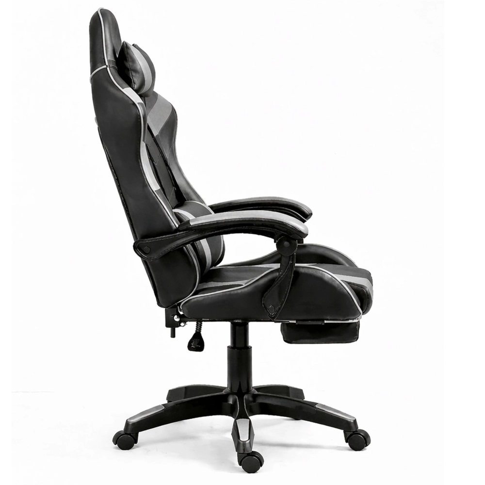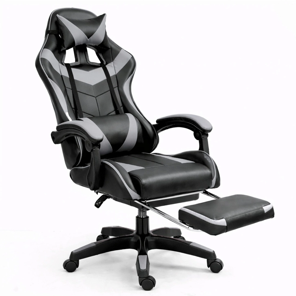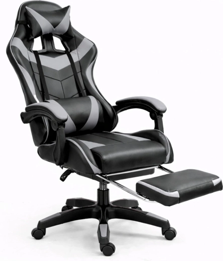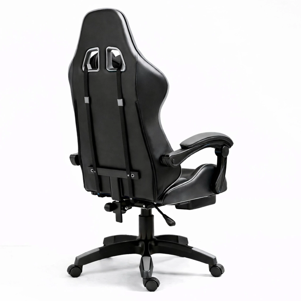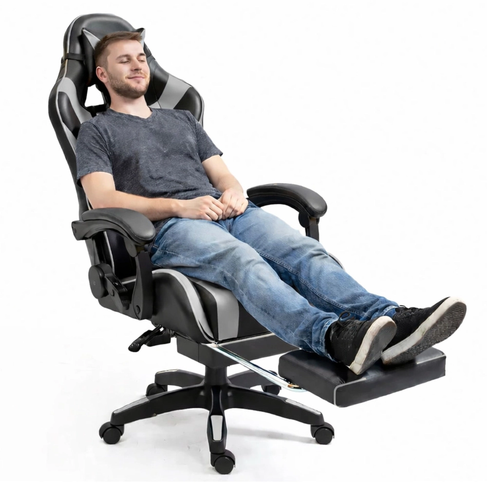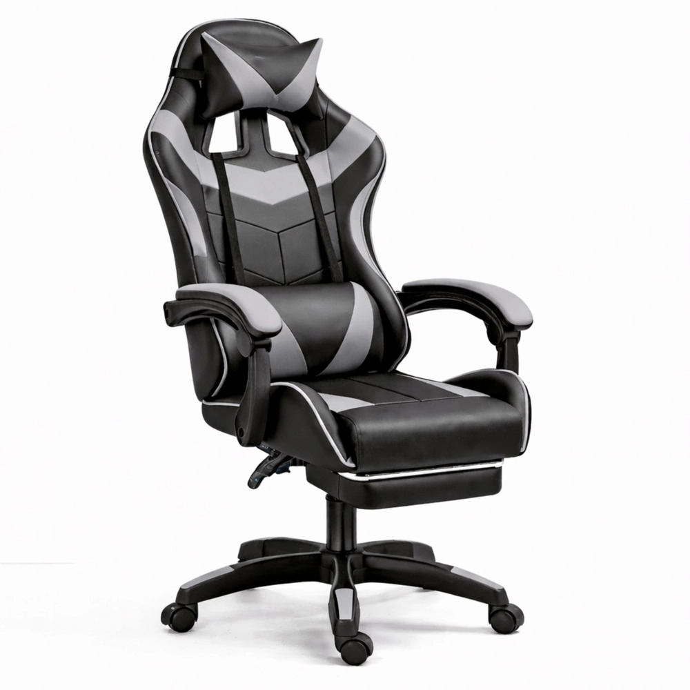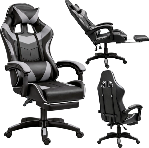 Stylová herní židle LEAN v černošedém provedení kombinuje ergonomii, komfort a moderní design. Nabízí vysoké opěradlo s polštářky pro hlavu a bedra, výškové nastavení, sklápění až do 135° a výsuvný podnožník. Odolná ekokůže, otočná základna 360° a pětiramenný kříž s kolečky zajišťují stabilitu i pohodlí při práci i hraní.