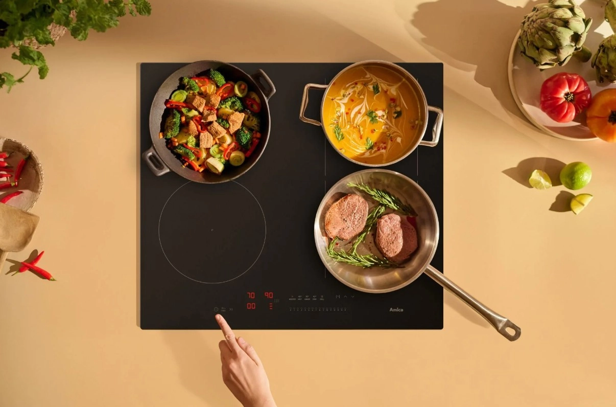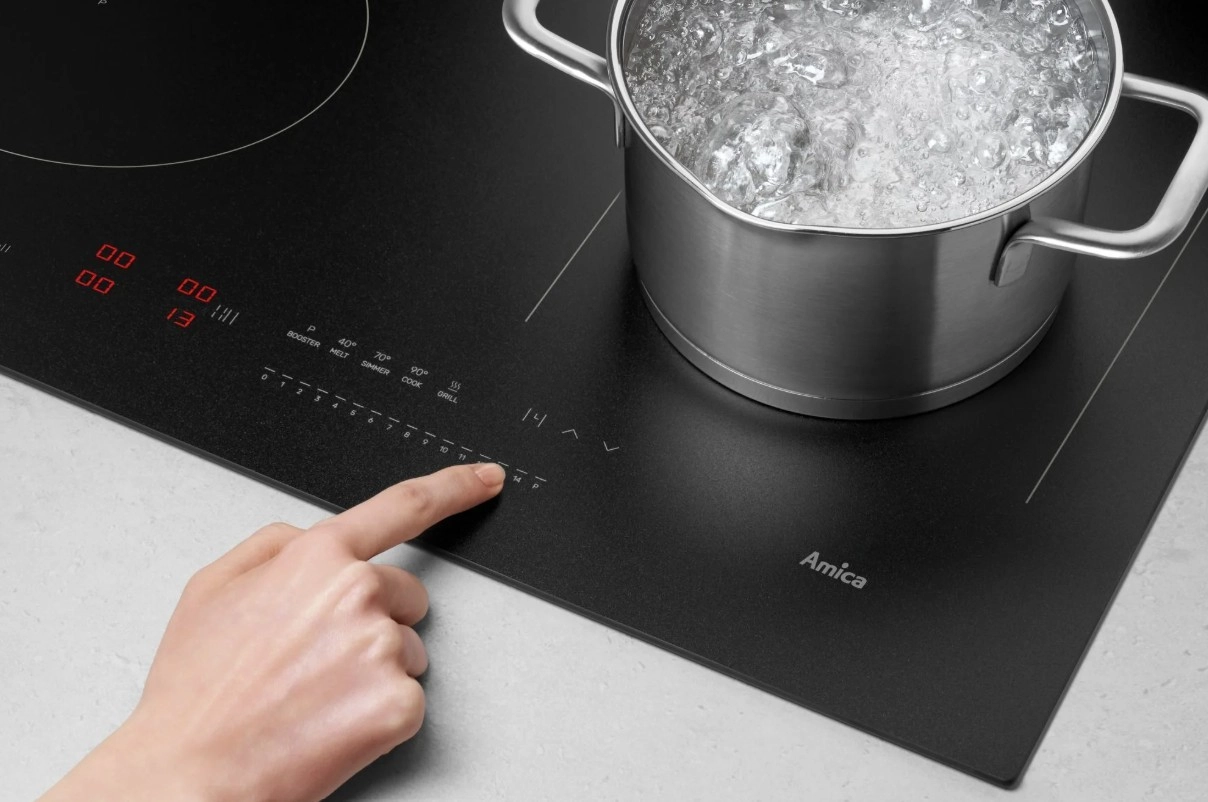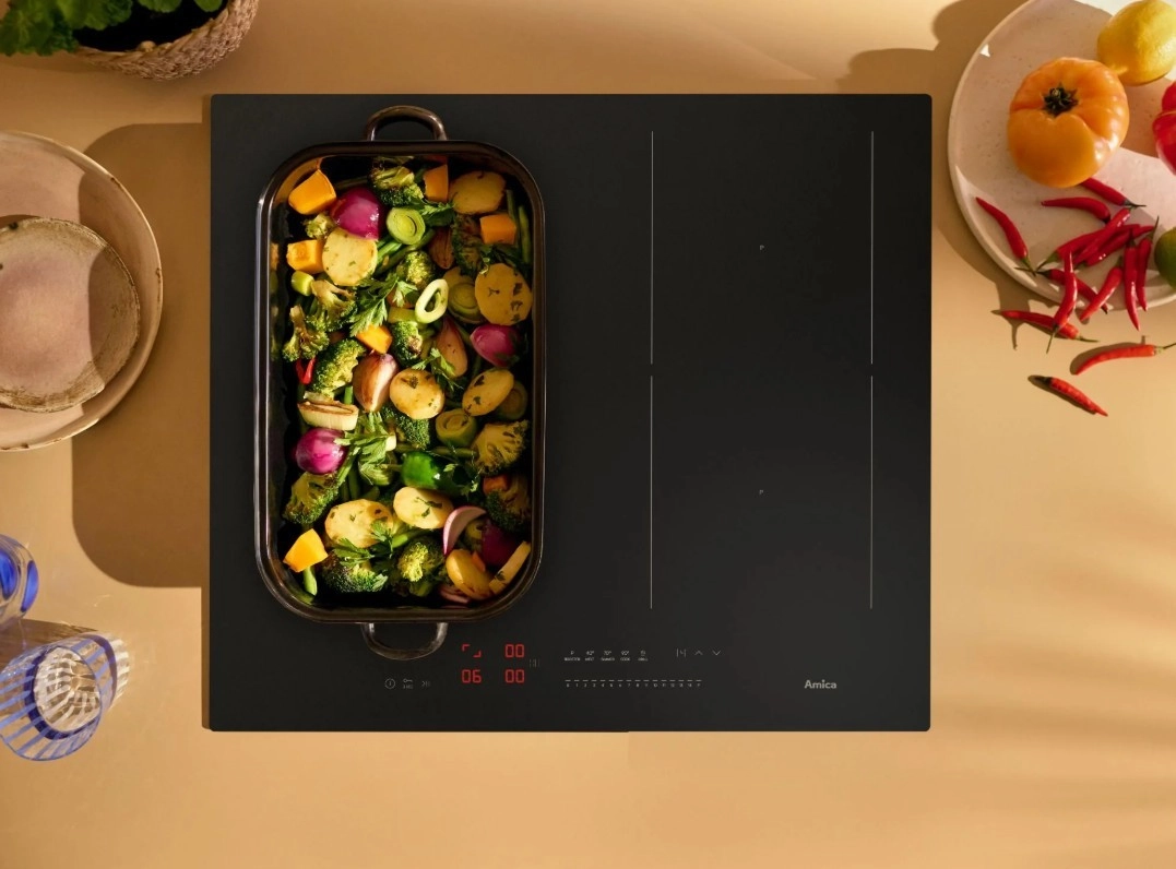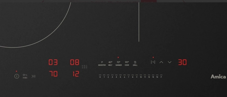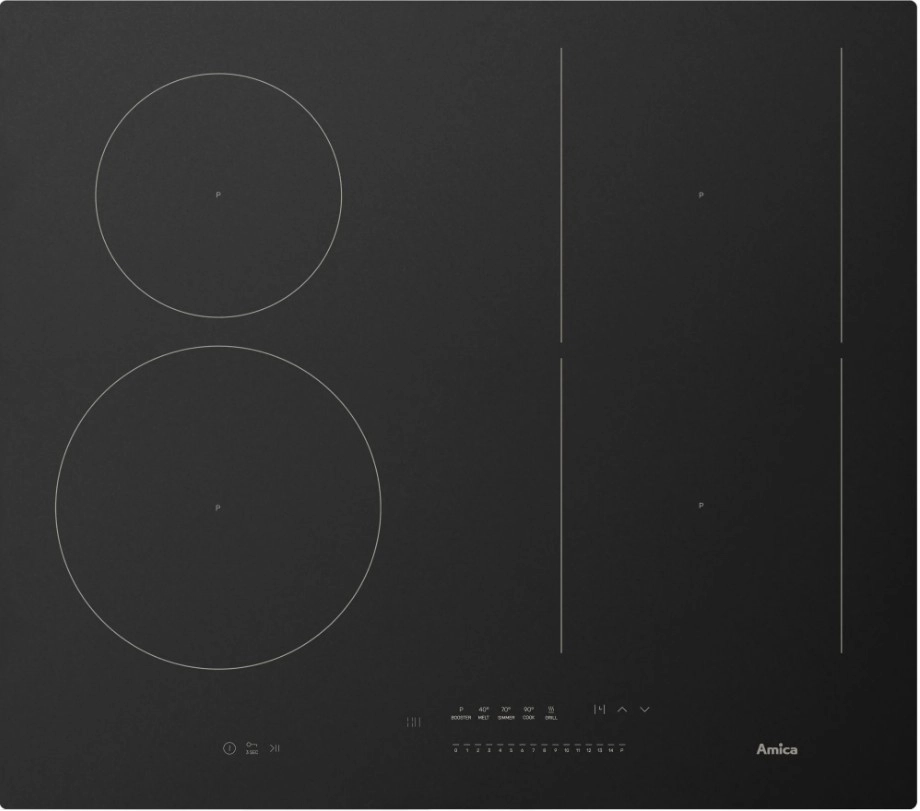 Indukce Amica uvaří 1 l vody 2× rychleji než klasická sklokeramika a dokáže ušetřit až 40 % energie. Díky PowerChoice Pro přizpůsobíte příkon jednofázové či třífázové instalaci a můžete vařit na všech zónách současně. Samozřejmostí je časovač pro každou zónu s automatickým vypnutím a akustickým signálem.